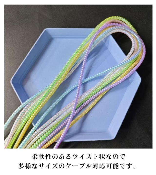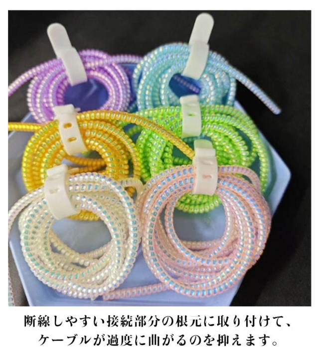 | ケーブルの接続部分を断線、抜け、ひび割れから保護します。 断線しやすい接続部分の根元に取り付けて、ケーブルが過度に曲がるのを抑えます。 変形しにくく、ケーブルから外れることがなく、安心してお使いいただけます。 柔軟性のあるツイスト状なので多様なサイズのケーブル対応可能です。 長さは200cmです。必要な長さにハサミで切ってご使用頂けます。 ケーブルにツイストしながら巻き付けるので、付け外しが簡単です。 くるくるとしたツイストデザインがユニークでかわいいです。めんどくさい配線整理にご自由にDIYしましょう! | |