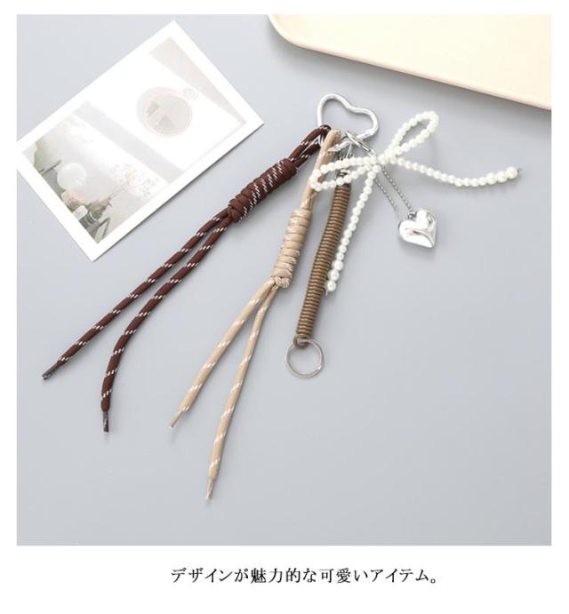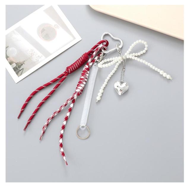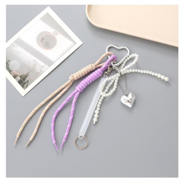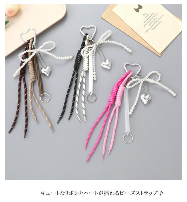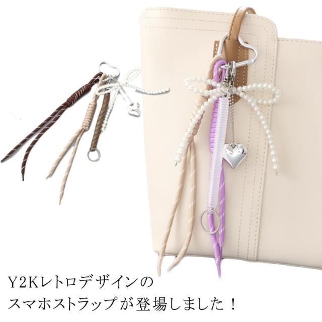 | Y2Kレトロデザインのスマホストラップが登場しました! キュートなリボンとハートが揺れるビーズストラップ♪ デザインが魅力的な可愛いアイテム。 シルバーのビーズにハートやリボン、パールがあしらわれたデザイン。 | |