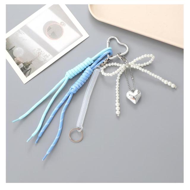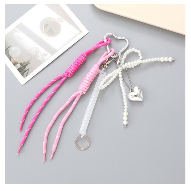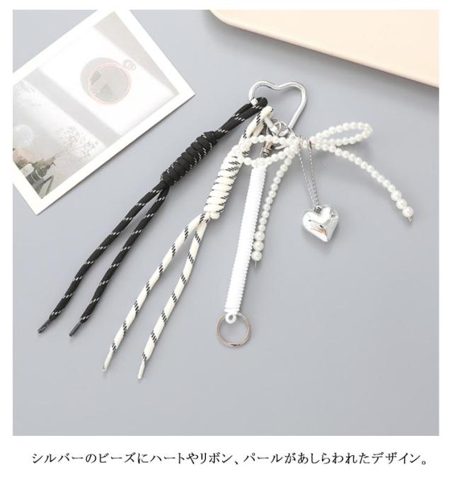 スマホ ストラップ ハート キーホルダー Y2K スマホチャーム スマホストラップ スマホ パール チャーム レトロ リボン かわいい 韓国 おしゃれ ハート シルバー Y2K レトロ iPhone Android キーホルダー キラキラ