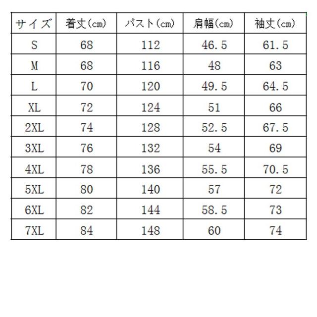 | サイズ | S M L XL 2XL 3XL 4XL 5XL 6XL 7XL |