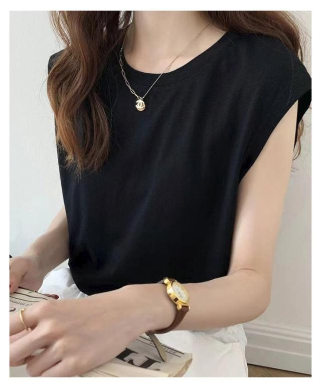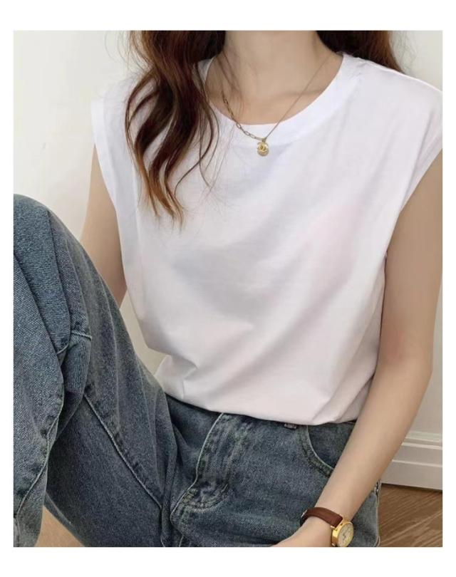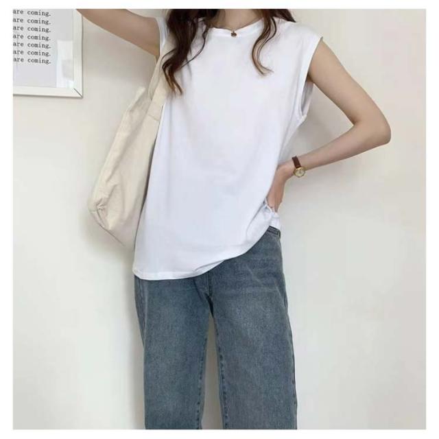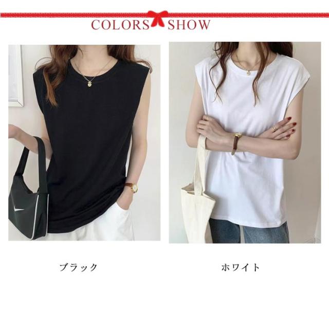 レディース Tシャツ ノースリーブ 通気性 カジュアル ノースリーブ トップス Tシャツ クルーネック 丸首 カットソー トップス 無地 夏物 ゆったり 大きいサイズ レイヤード風