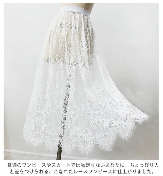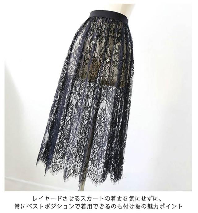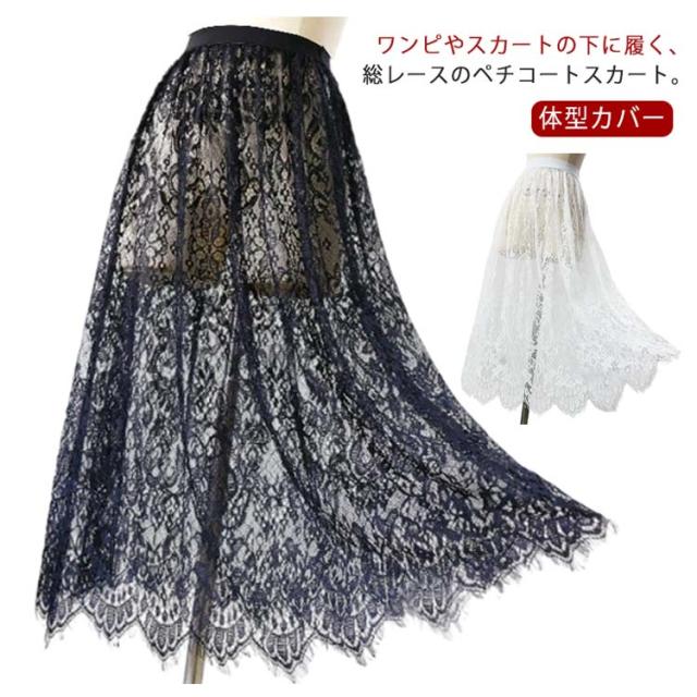 | ワンピやスカートの下に履く、総レースのペチコートスカート。 これからの季節、持っていると幅広いコーデが楽しめる小技アイテムです ウエスト部分はゴムなので着脱も着心地もストレスフリー レイヤードさせるスカートの着丈を気にせずに、常にベストポジションで着用できるのも付け裾の魅力ポイント 普通のワンピースやスカートでは物足りないあなたに。ちょっぴり人と差をつけられる、こなれたレースワンピースに仕上がりました。 | |