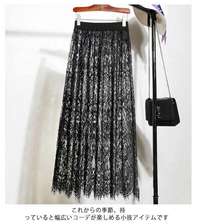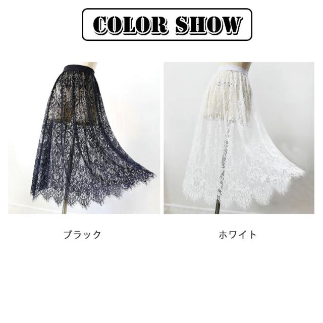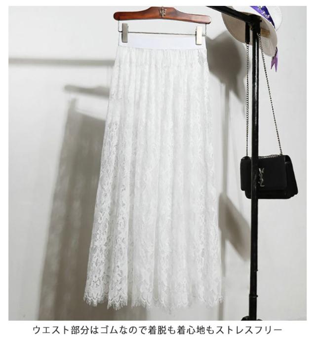 レース 付け裾 ロング スカート ペチコート ペチスカート 75cm インナー スカート 総レース 丈増し つけ裾 重ね着 ゴムウエスト ドレスインナー インナー おしゃれ 体型カバー レディース ロングスカート マキシ丈 白 黒