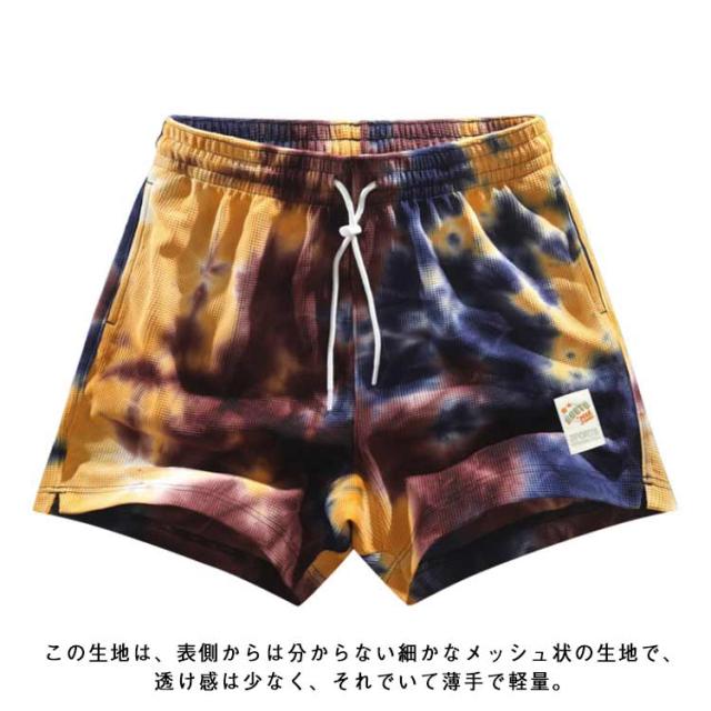 | 独特なタイダイ風デザインのショートパンツ ハーフパンツは高い吸水速乾性を持つドライメッシュ生地を使用。 この生地は、表側からは分からない細かなメッシュ状の生地で、透け感は少なく、それでいて薄手で軽量。 伸縮性に優れ、縫い目が平らなフラットシーマ縫製を採用し、より快適な肌触りを実現したストレッチ、着心地が抜群です! UVカットで紫外線がカットでき、室外の活動をプロテクトできます。 ランニング、旅行、ジム、フィットネス、アウトドア、スポーツ、部屋着、普段着としてあらゆるシーンに活用できる!非常に穿きやすく動きやすい1本に仕上がっております。 また、自宅での部屋着としても、おしゃれな雰囲気を演出します。さらに、多彩なカラーバリエーションが用意されており、あなただけの個性を存分に表現することができます。 | |