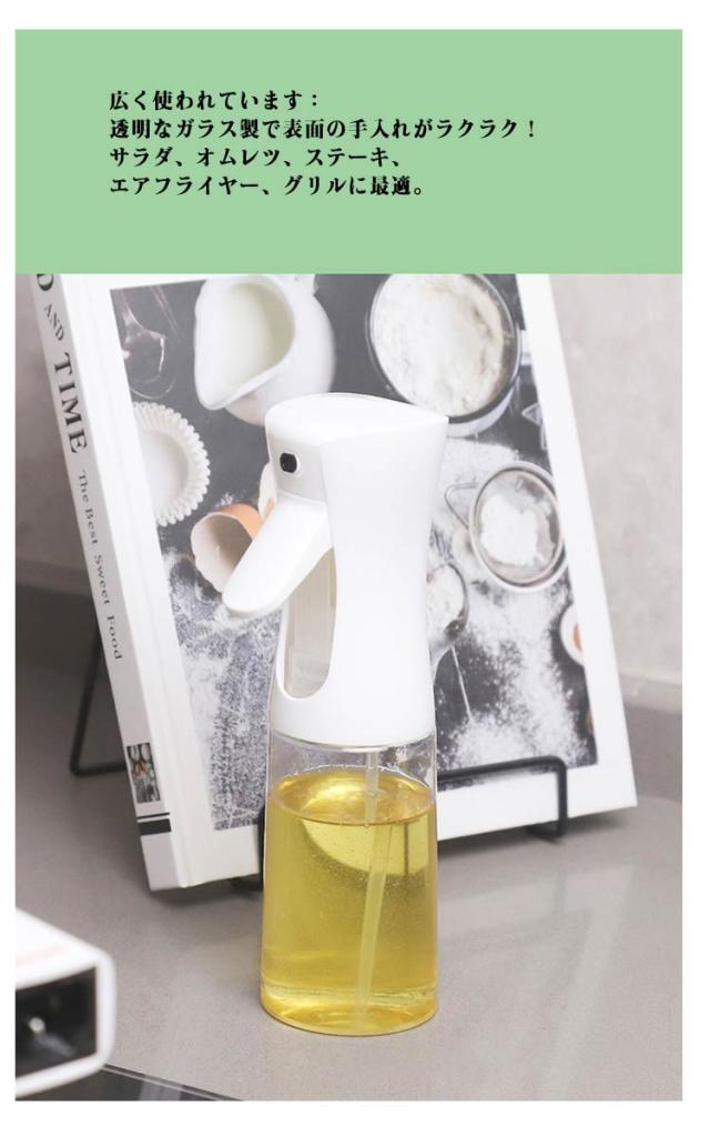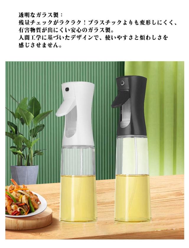 | スリム型でキッチンのスペースを有効活用オイルスプレーボトル。【2本セット】 均一な霧化:料理に必要な油の量を正確にコントロール!オイルの量をコントロールするあらゆるレシピに適しています。清潔でこぼれにくい超ロングノズルが、料理をより簡単にします。シェフやグルメに愛され、より健康的な料理を作ることができます。 透明なガラス製:残量チェックがラクラク!プラスチックよりも変形しにくく、有害物質が出にくい安心のガラス製。人間工学に基づいたデザインで、使いやすさと煩わしさを感じさせません。底に少なくなったオイルもしっかり吸引! 漏れ防止設計:リークプルーフデザインで、液漏れを防止!大口径ボトルで食用油の注ぎ入れが簡単。ボタンを押すだけで細かいミストを噴出する必需品。キッチンでのストレスを解消します。 使いやすい:スプレーボトルを押すだけで、細かいミストが広がります。失敗知らずの料理に!均一なミストで油の過剰使用を回避し、おいしい料理を楽しめます。 広く使われています:透明なガラス製で表面の手入れがラクラク!サラダ、オムレツ、ステーキ、エアフライヤー、グリルに最適。オリーブオイルやサラダ油はもちろん、酢やしょうゆ、レモン汁などにも使える万能タイプ。キッチンでの活躍が期待できます。 | |