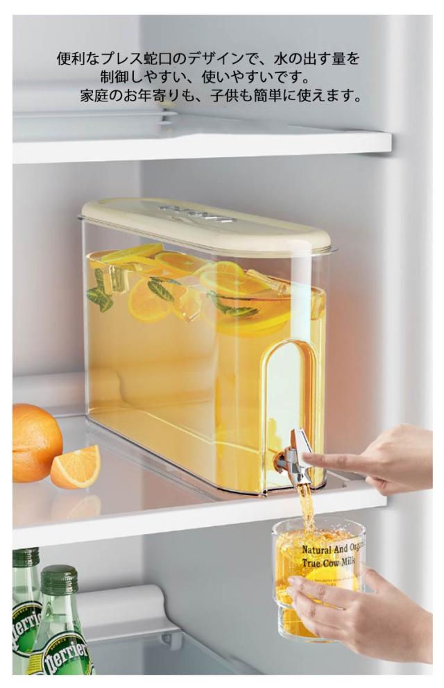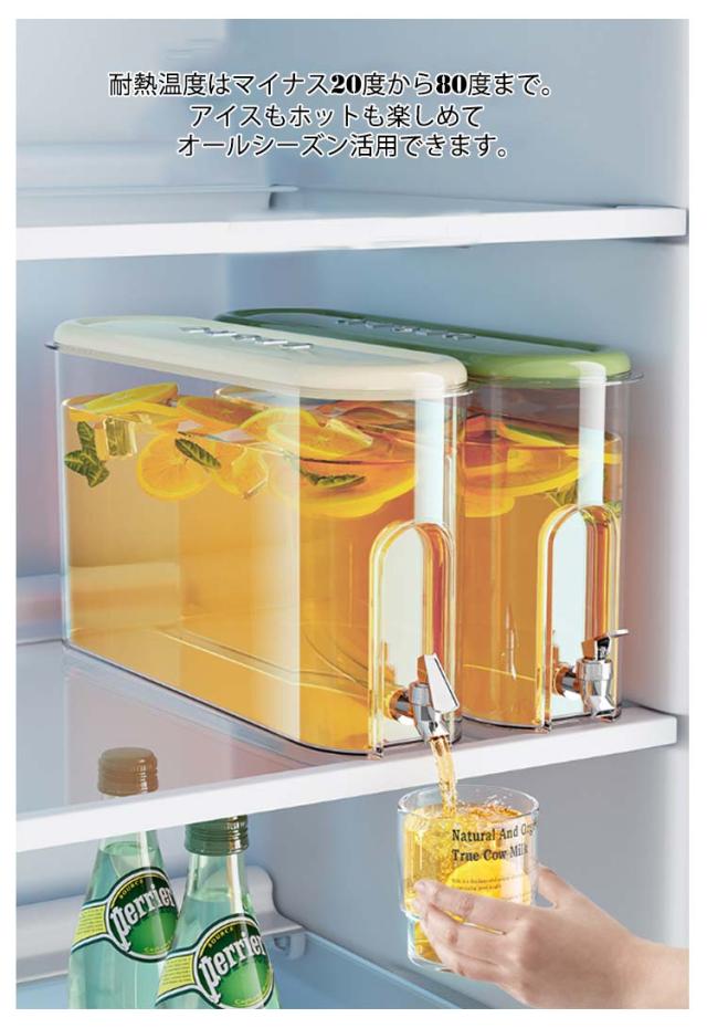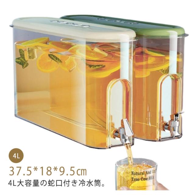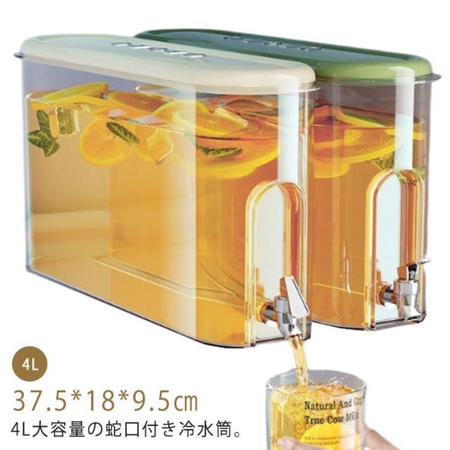 | 4L大容量の蛇口付き冷水筒。【4L】 便利なプレス蛇口のデザインで、水の出す量を制御しやすい、使いやすいです。家庭のお年寄りも、子供も簡単に使えます。 ボトルの口が大きめ:ボトル容器の口部分は、大きめの作りなので果物やお花なども入れやすくお手入れがしやすいのもポイントです。 ハーブティーやフルーツティーを入れても、中のフィルターが果肉や種をキャッチしてくれて注ぎやすく詰まりにくい。 4リットルの大容量:500mlのペットボトルが8本分も入る冷水筒は、大家族におすすめです。パーティやピクニックにも大活躍してくれます。 耐熱温度はマイナス20度から80度まで。アイスもホットも楽しめてオールシーズン活用できます。 | |