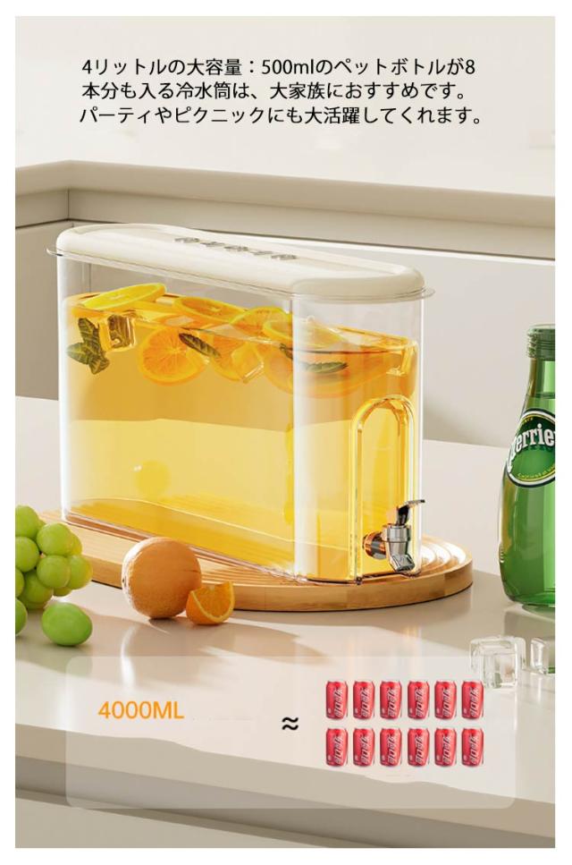 冷水筒 広口 大容量 お茶ポット ピッチャー 麦茶ポット 耐熱 スリム プラスチック 4L 蛇口付き 冷水ポット 洗いやすい ウォーターボトル 冷蔵庫 耐冷 水筒 水差し 水出し 冷茶 ジャグ お茶 麦茶 ジュース ドリンク