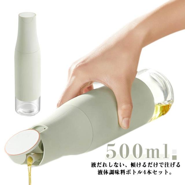 スリム 自動開閉 油を注ぐ 油ポット 4本セット 液だれしない 漏れ防止 ガラス 料理用 オイルポット 4本セット 500ml 調味料入れ 醤油ボトル 醤油差し 油入れ 酢ボトル 油さし 垂れない 片手 キッチン用品 詰め替え容器 調味料 ビン ドレッシングボトル