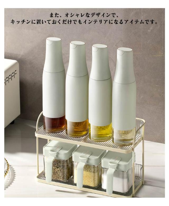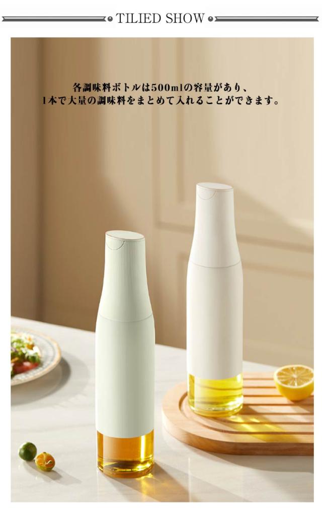 | 液だれしない、傾けるだけで注げる液体調味料ボトル4本セット。 各調味料ボトルは500mlの容量があり、1本で大量の調味料をまとめて入れることができます。 ガラス瓶の口が大きく、詰め替えも簡単なため、経済的で環境にも優しい使用方法が可能です。 また、オシャレなデザインで、キッチンに置いておくだけでもインテリアになるアイテムです。 | |