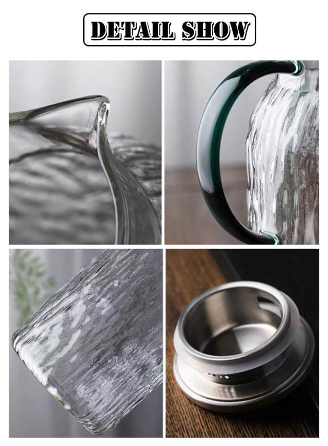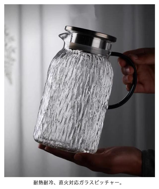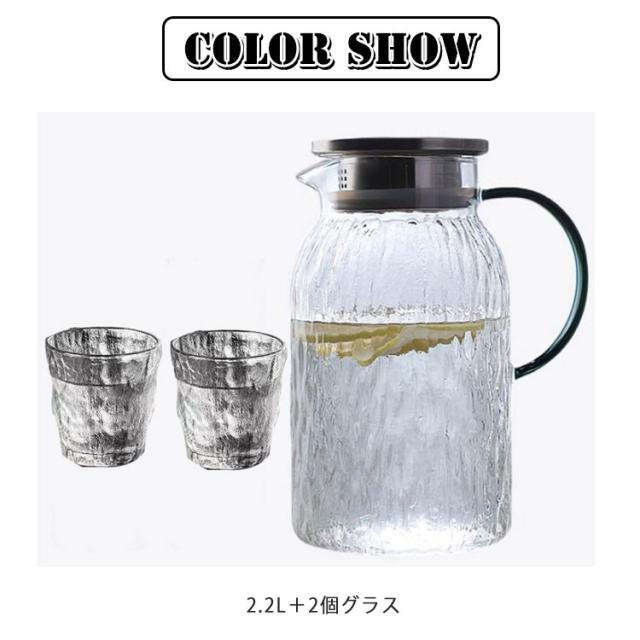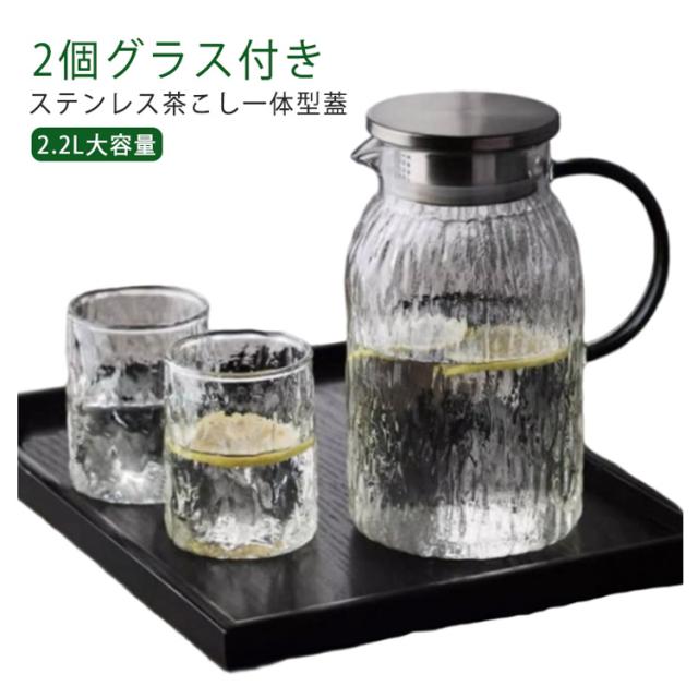 | 耐熱耐冷、直火対応ガラスピッチャー。【2.2L大容量】【2個グラス付き】【ステンレス茶こし一体型蓋】 【直火対応】耐熱のホウケイ酸ガラスで作られて、ビーカーと同じ材質で、直火可能なガラスポットです 【簡単に洗える】ボトルの口径が大きく、手が直接差し込めて清潔できます 【-20℃〜150℃対応】麦茶、紅茶、ジュース、コーヒー、ミルクなどの飲み物を淹れたい時にご気楽にお使えいただけます。-20℃〜150℃、耐熱ガラスので、温かい飲み物にも冷たい飲み物にも使える耐熱ガラス製のピッチャーです | |
