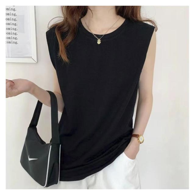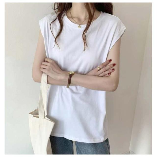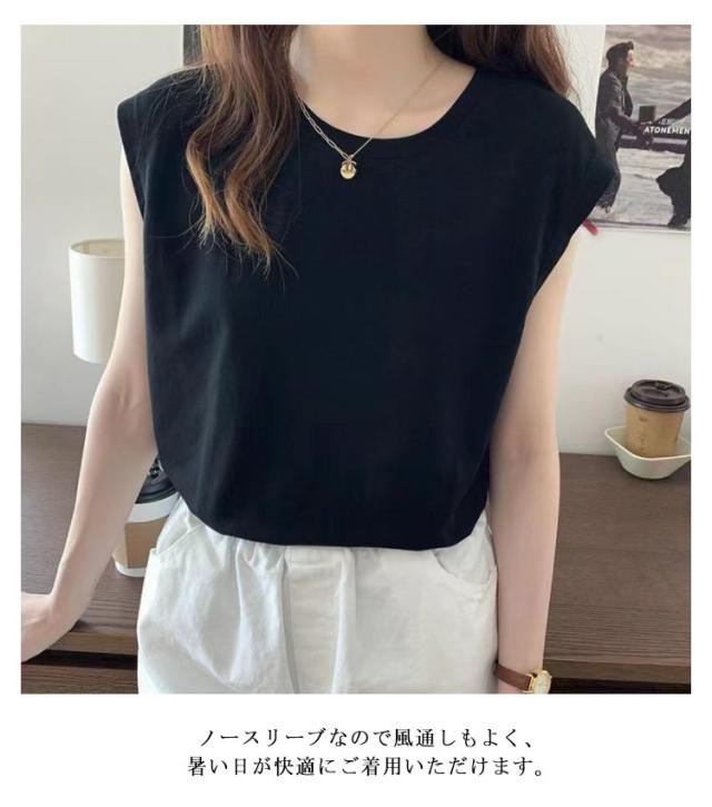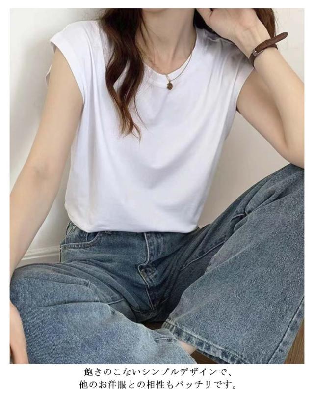 丸首 クルーネック Tシャツ ゆったり レディース トップス Tシャツ カジュアル ノースリーブ トップス カットソー 通気性 ノースリーブ 夏物 無地 大きいサイズ レイヤード風