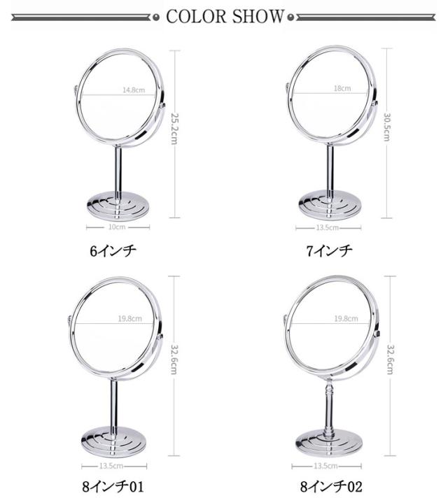 卓上鏡 両面鏡 ジュエリー 卓上ミラー 3倍 店舗 スタンドミラー 高さ 調節 見やすい 両面 アンティーク アクセサリー スタンドミラー ショップ メイク用 縁無し 8インチ 拡大鏡 裏面 ミラー 安い 拡大鏡付き インテリア 移動式 アイアン 高さ調節