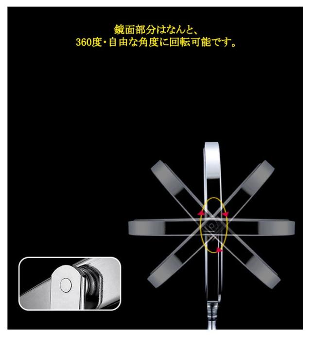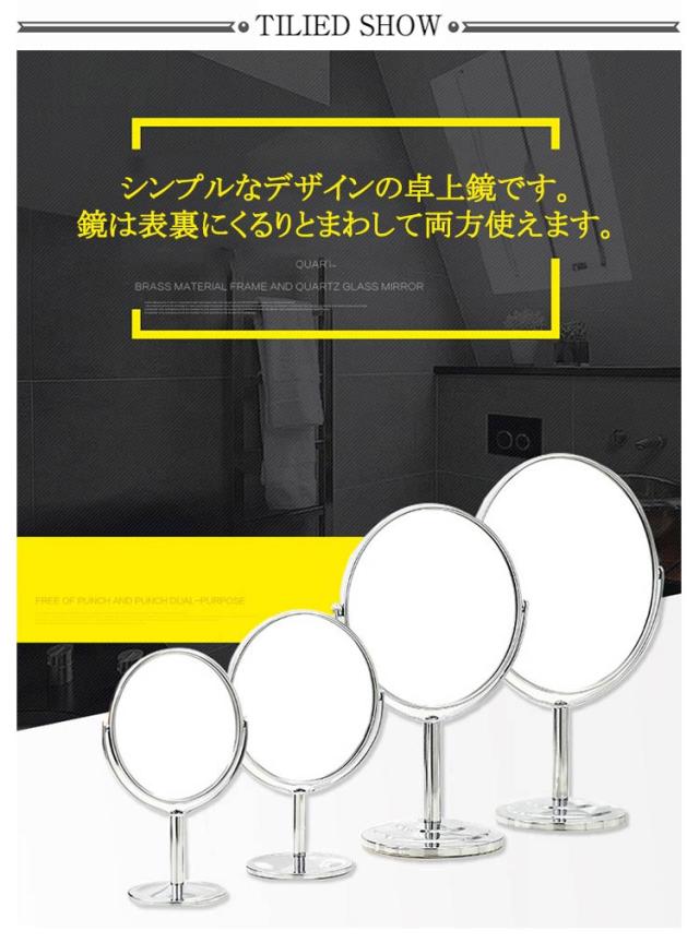 | 3倍拡大 6/7/8インチ 好きな角度に固定可能。 シンプルなデザインの卓上鏡です。鏡は表裏にくるりとまわして両方使えます。 鏡面部分はなんと、360度・自由な角度に回転可能です。 その時々の使いやすい角度に、簡単に変えられるので、使い勝手はバツグンです。 3倍拡大機能がありますので、化粧、顔剃りや白髪抜きは使いやすいです。 転落防止、机の傷つき防止、底面に厚さ約2mmの滑り止め付き。 スタンドミラーとしても、手鏡としても使用できます。鏡径が大きさで使いやすいです。 | |