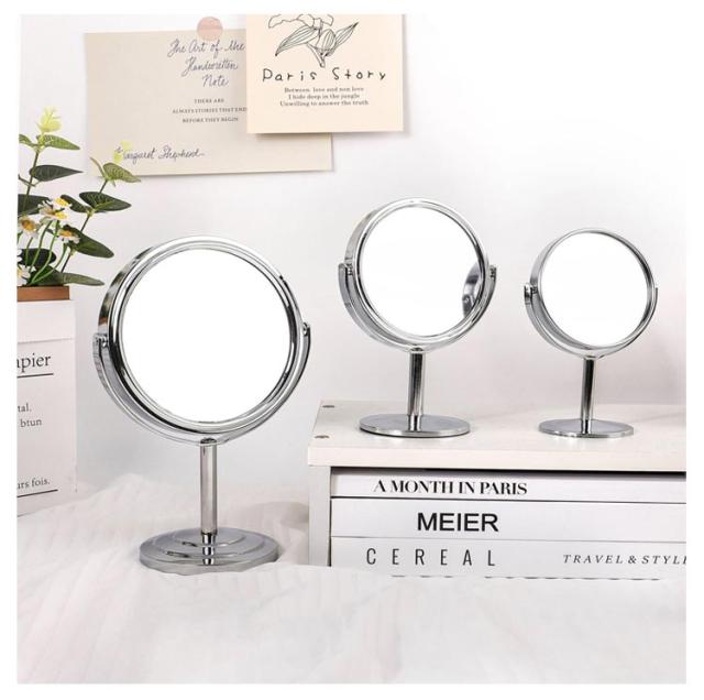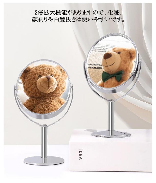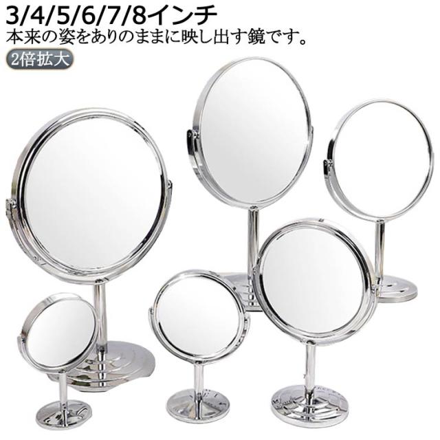 スタンドミラー 卓上鏡 スタンドミラー メイクミラー メイク 2倍拡大 ナピュアミラー 卓上 化粧鏡 2倍 アイメイク まつげエクステ 両面 丸型 マツエク 拡大鏡 シルバー 3インチ 4インチ 5インチ 6インチ 7インチ 8インチ
