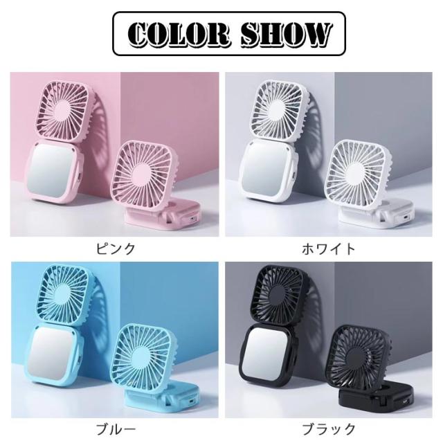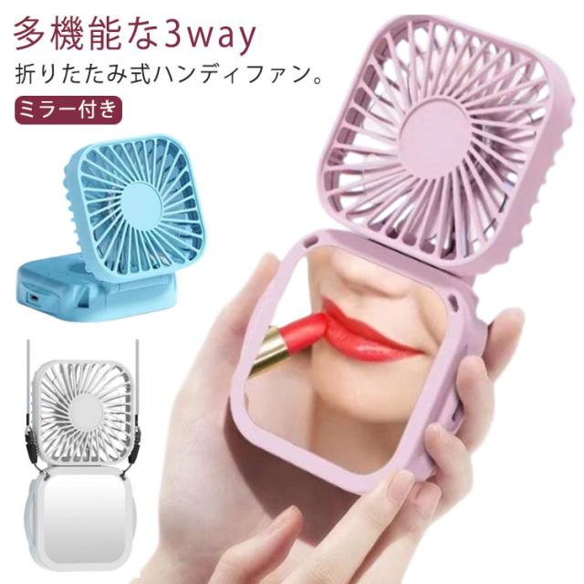 ファン 携帯扇風機 手持ち 静音 首掛け 扇風機 ポータブル 通学 ハンディファン ミニ扇風機 USB 折りたたみ おしゃれ コンパクト ミラー付き 小型扇風機 卓上扇風機 鏡付き 風量3段階 首掛けファン 手持ち扇風機 軽量 デスクファン オフィス レジャー 携帯扇風機 通勤