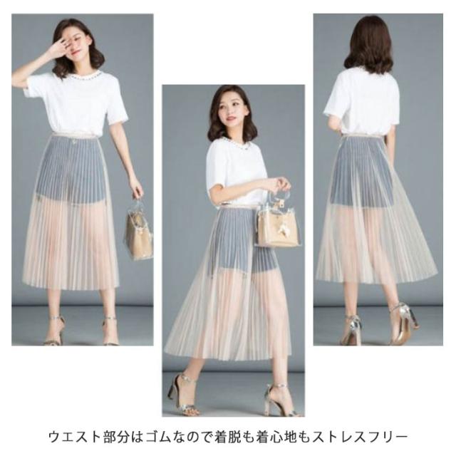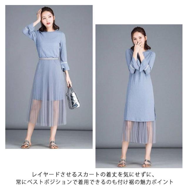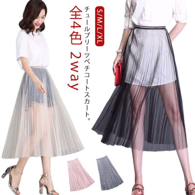 チュール 体型カバー ロング 丈増し 75cm 重ね着 インナー スカート レイヤード プリーツスカート ペチスカート プリーツ ペチコート ゴムウエスト おしゃれ ペチコート レディース ロングスカート マキシ丈 白 黒 チュールスカート