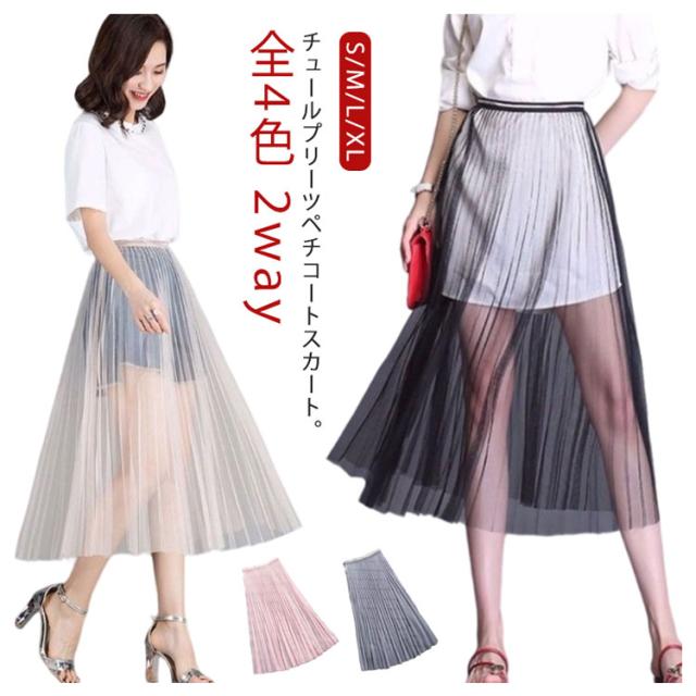 | チュールプリーツペチコートスカート。【2way】【全4色】【S/M/L/XL】 これからの季節、持っていると幅広いコーデが楽しめる小技アイテムです ウエスト部分はゴムなので着脱も着心地もストレスフリー レイヤードさせるスカートの着丈を気にせずに、常にベストポジションで着用できるのも付け裾の魅力ポイント 普通のワンピースやスカートでは物足りないあなたに。ちょっぴり人と差をつけられる、こなれたレースワンピースに仕上がりました。 | |