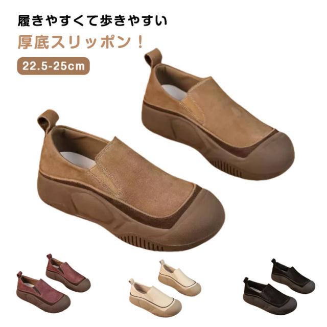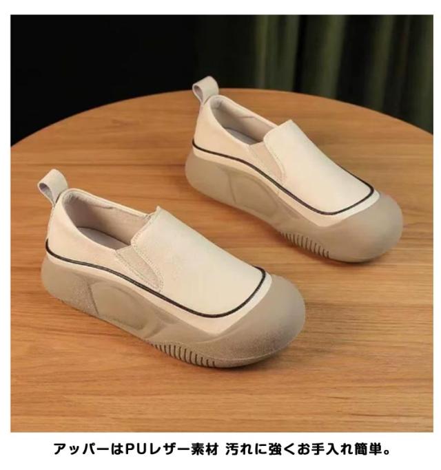 厚底 ウォーキングシューズ ローカット レディース 靴 疲れない ママ カジュアルシューズ スニーカー スリッポン スリッポン 履きやすい 歩きやすい 運動靴 大きいサイズ PUレザー 美脚 ぺたんこ 軽量 脱げない 婦人靴