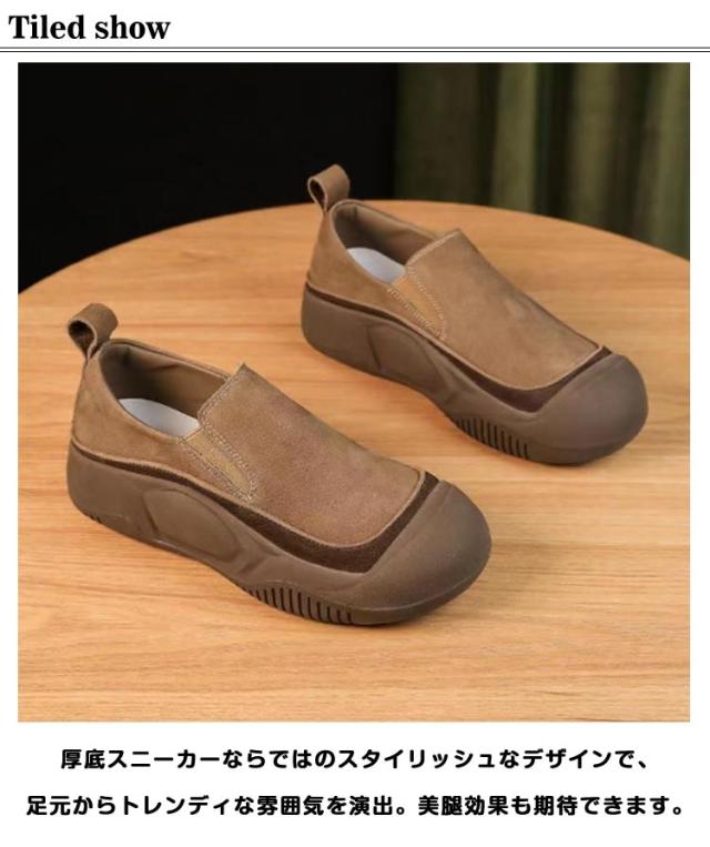 | 履きやすくて歩きやすい厚底スリッポン! 厚底スニーカーならではのスタイリッシュなデザインで、足元からトレンディな雰囲気を演出。美腿効果も期待できます。 紐なしで脱ぎ履きが楽ちん、履き口にはゴムを装備しているので甲周りもぴったり。 アッパーはPUレザー素材 汚れに強くお手入れ簡単。 普段履き、ウォーキング、学校、通学、通勤など幅広いシーンで活躍! | |