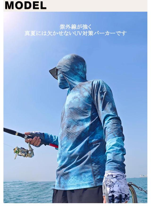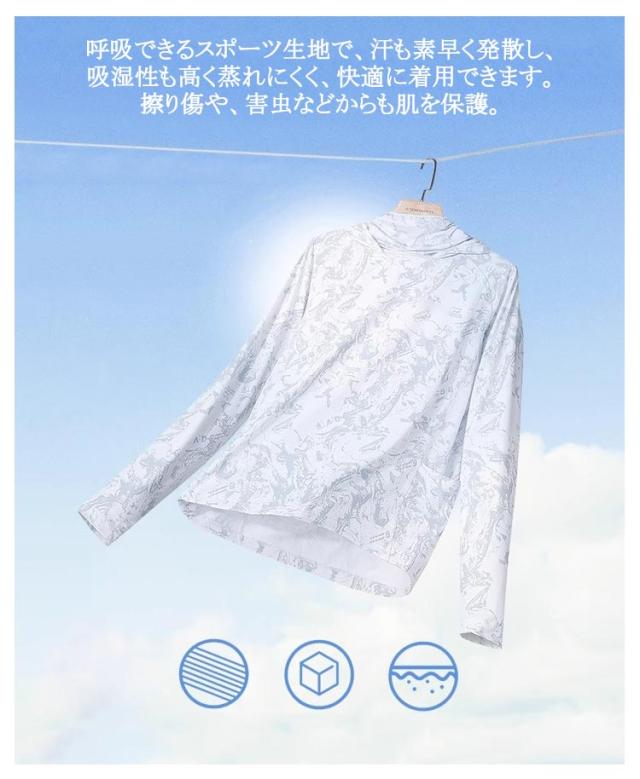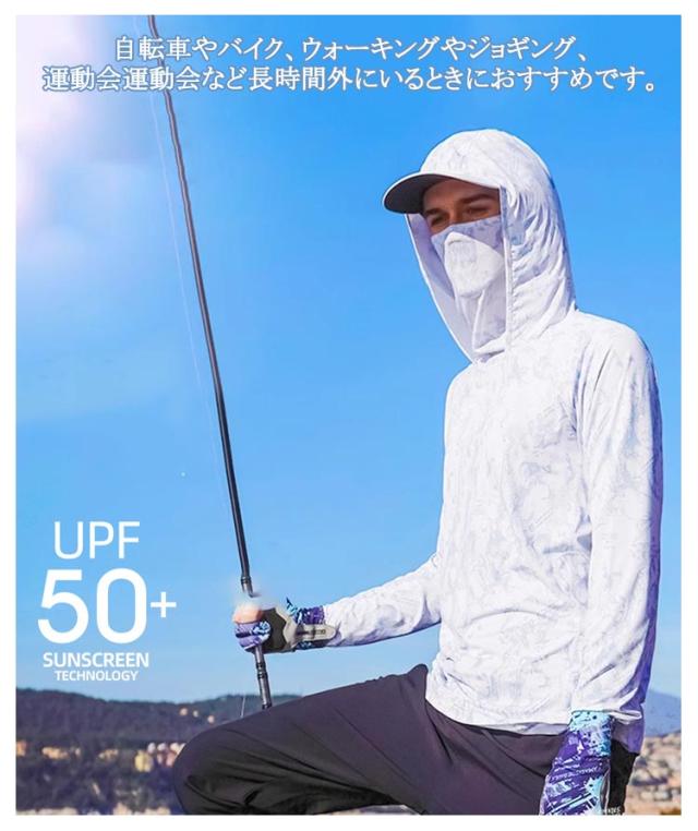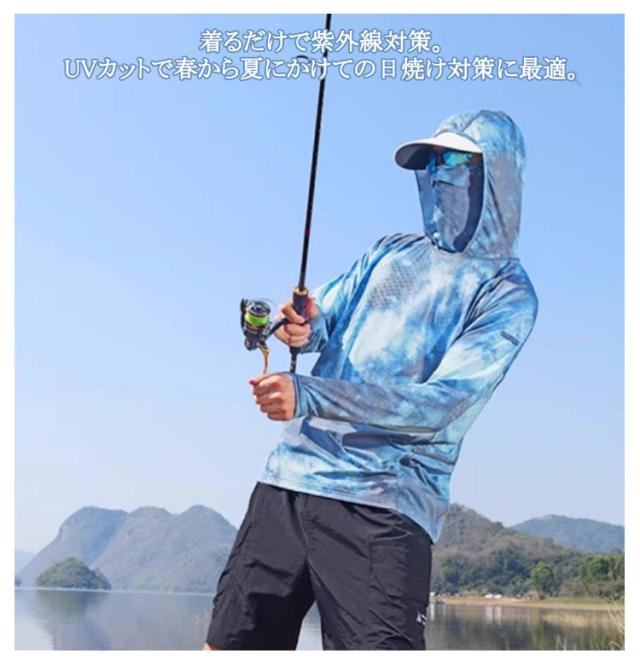 | 男女兼用!マスク、フードが一体になっていて、日焼け対策にバッチリ!ラッシュガード フィッシングウエア。紫外線が強く真夏には欠かせないUV対策パーカーです。 着るだけで紫外線対策。UVカットで春から夏にかけての日焼け対策に最適。 通気性優良かつ吸水速乾素材で夏場の汗ばむ季節に快適なサラリとした肌触りのラッシュガード 呼吸できるスポーツ生地で、汗も素早く発散し、吸湿性も高く蒸れにくく、快適に着用できます。擦り傷や、害虫などからも肌を保護。 折りたためばとてもコンパクトになるので持ち歩きにも便利。 自転車やバイク、ウォーキングやジョギング、運動会運動会など長時間外にいるときにおすすめです。 | |