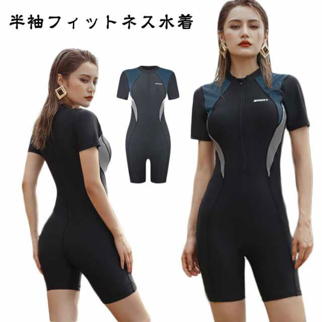 体型カバー レディース 水着 半袖 フィットネス水着 フィットネス水着 女性 競泳水着 パット入り プール 海