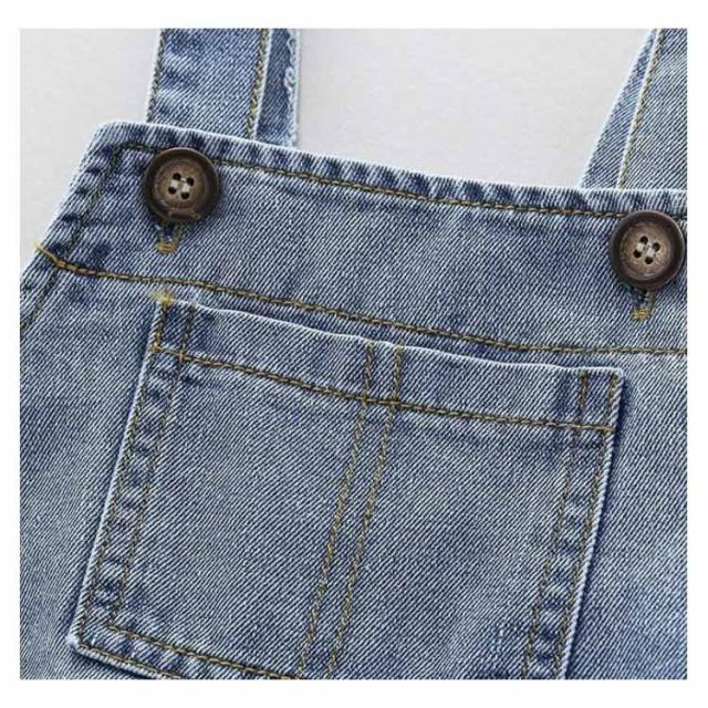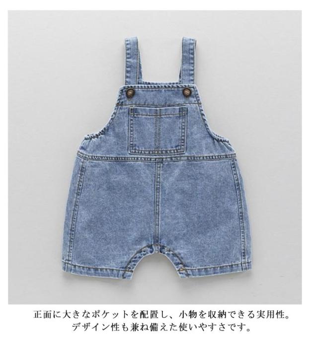 | 股部にボタンが付いており、開け閉め可能で便利です。 ダブルボタン式の肩紐で、サイズ調整が自由自在。 成長に合わせて長さを変えられるので、長く愛用可能です。 柔らかいデニム素材を使用しており、赤ちゃんの肌に優しく、夏の暑さでも快適に着用できます。 正面に大きなポケットを配置し、小物を収納できる実用性。デザイン性も兼ね備えた使いやすさです。 シンプルで使いやすいデザインで、Tシャツやパーカーと合わせやすい | |