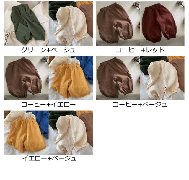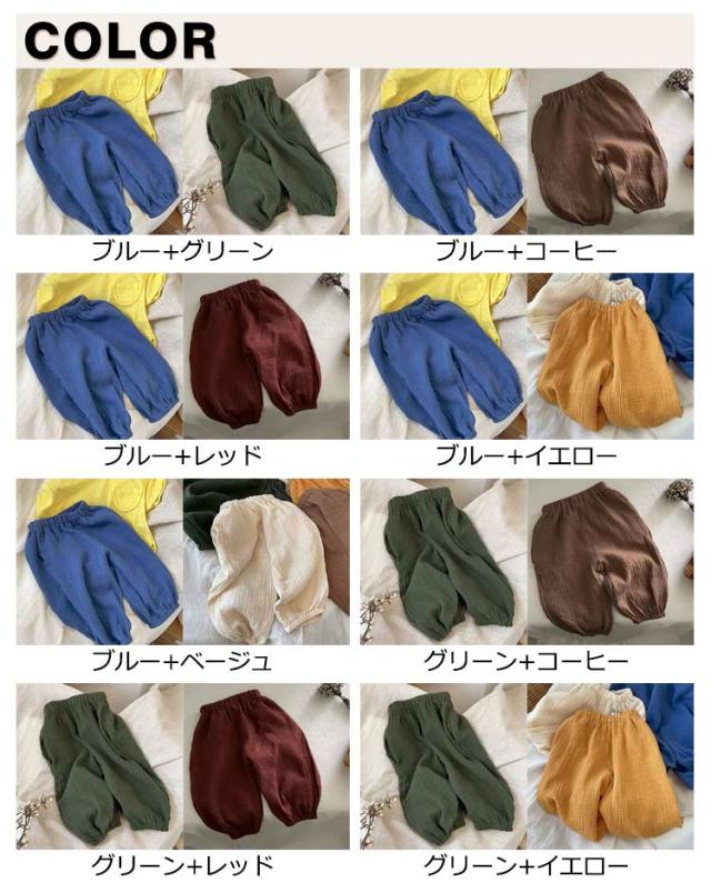| ウエストゴムで履き替えやすい、室内でもお出かけの場合も着られるラクチンな長ズボン♪ 真夏でも涼しく履ける通気性の良い涼しい長ズボンです。半ズボンと違い、紫外線や蚊や怪我からも保護されます。薄手の生地で家でも外でも、保育園でもどこでも重宝します。 また、ウエスト部分はゴム仕様で、エアコンの冷房で就寝用のパジャマとしてもOK♪ | |