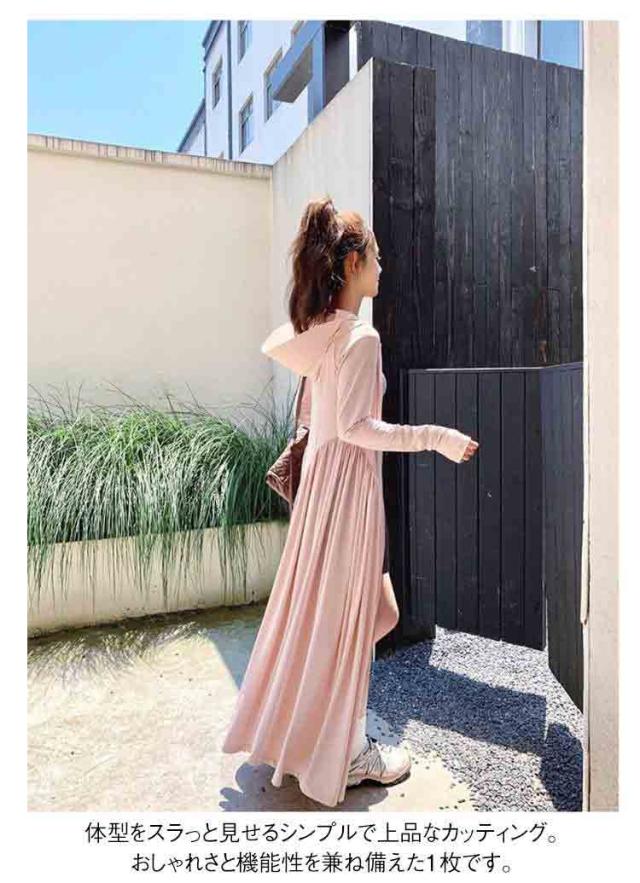 サマーロングコート UVカット ロング丈 ロングカーディガン 紫外線対策 ロングカーディガン 接触冷感 ワンピース風 パーカー ラッシュガード ロング 指穴 長袖 ジップアップ 吸汗 速乾 お出かけ アウトドア 旅行 散歩
