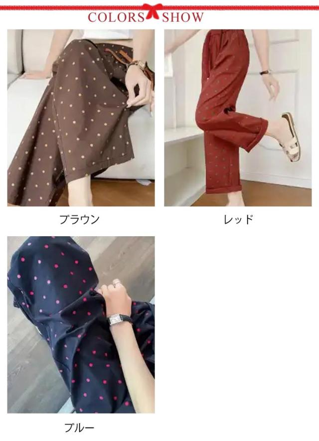 ドット柄パンツ 夏 レディース ストレートパンツ 速乾パンツ ワイドパンツ ドット柄パンツ パンツ 涼感 夏用 大きいサイズ ゆったり M−4XL