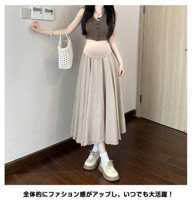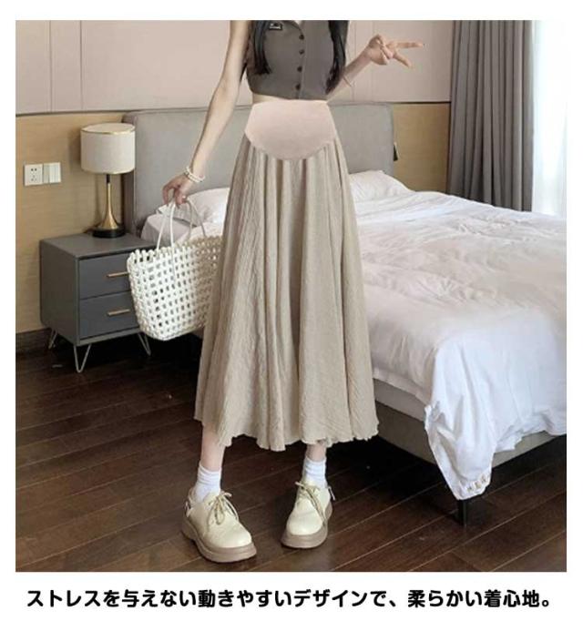 妊娠 ロングスカート 妊婦服 スカート 妊婦 涼しい ミモレ丈 マタニティスカート 妊婦スカート マタニティ 薄手 レディース マタニティウェア フレアースカート 授乳 オールシーズン オフィスカジュアル 韓国ファッション 春服 夏服 大きいサイズ 無地