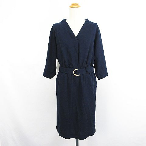 【中古】マーキュリーデュオ ワンピース 七分袖 クロスオーバーVネック ひざ丈 F ネイビー ※EKM レディース