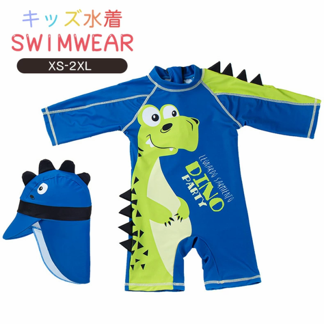 ベビー 水着 男の子 ロンパース 子ども水着 キッズ 男の子 ラッシュガード 子供水着 こども 2点セット かわいい恐竜柄 オールインワン ラッシュガード 長袖 フィットネス水着 boy みずぎ スイムウェア UV対策 日焼け防止帽子付け 75cm 90cm 100cm 110cm 120cm 130cm