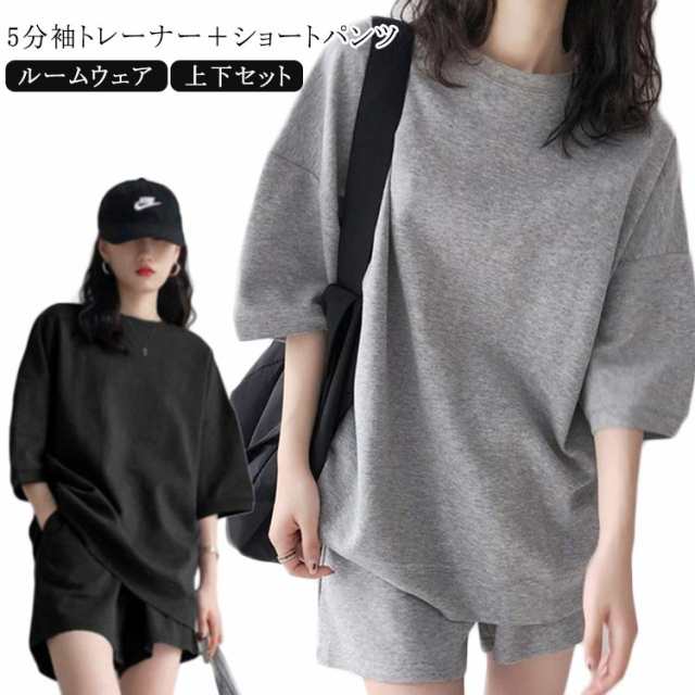 トレーナー ルームウェア 無地 ショートパンツ レディース tシャツ 5分袖 半袖 セットアップ ルームウェア 短パン パジャマ 部屋着 夏 ゆったり オーバーサイズ 韓国風 スウェット リラックスウェア ナイトウェア 寝間着 シンプル 大人可愛い おしゃれ 春夏