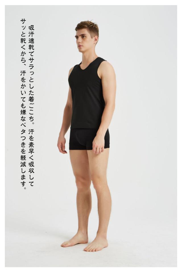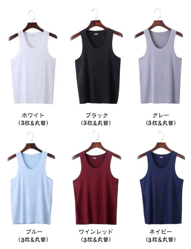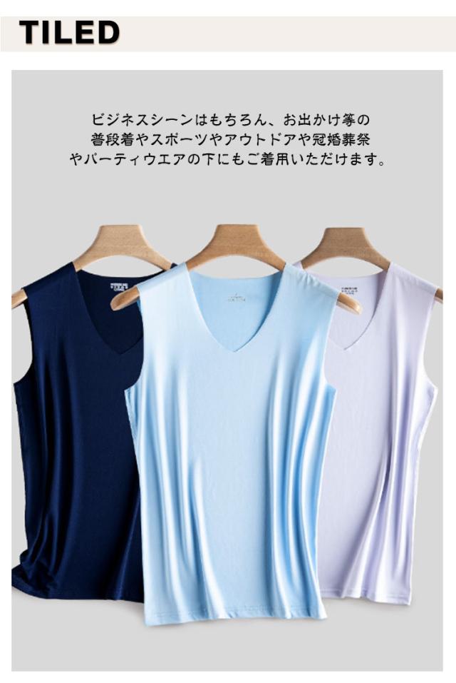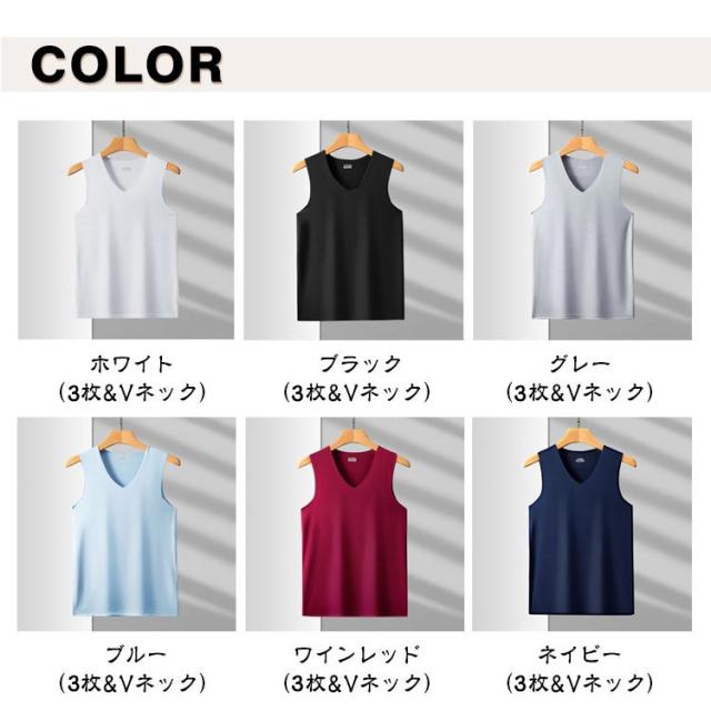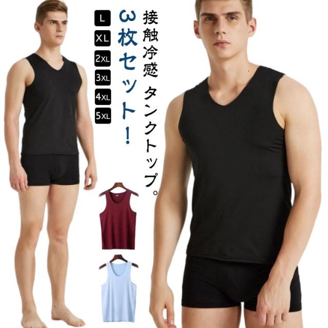【3枚セット】接触冷感 タンクトップ メンズ インナーシャツ Vネック Uネック 丸首 肌着 速乾 通気 シームレス トップス ノースリーブ ひんやり 涼しい 吸汗速乾 春夏 夏用 アンダーウエア ビジネス カジュアル レイヤード 重ね着 送料無料 L-5XL