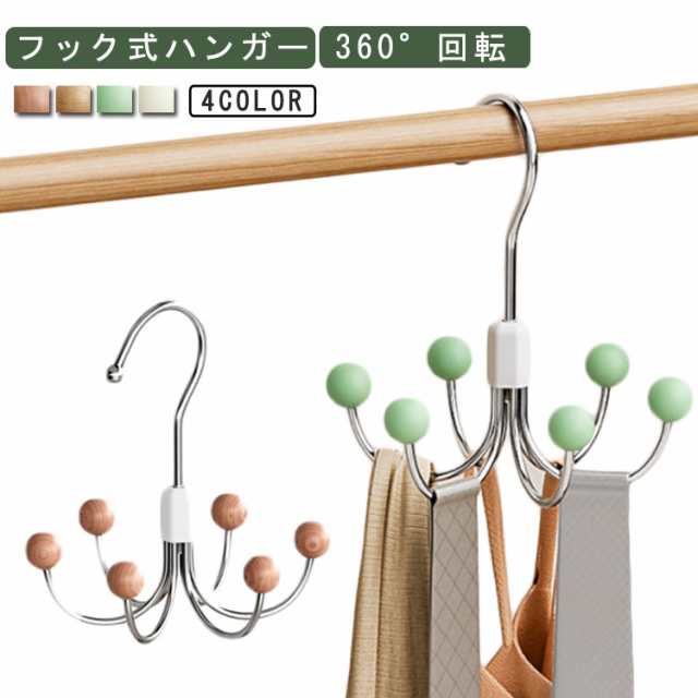 | フック式ハンガー 360°回転 1つのハンガーに6つフックがついているのでベルトや帽子、バッグなどの小物を収納できる! 360°回転式のフックで、掛けた物が取り出しやすいです。 | |