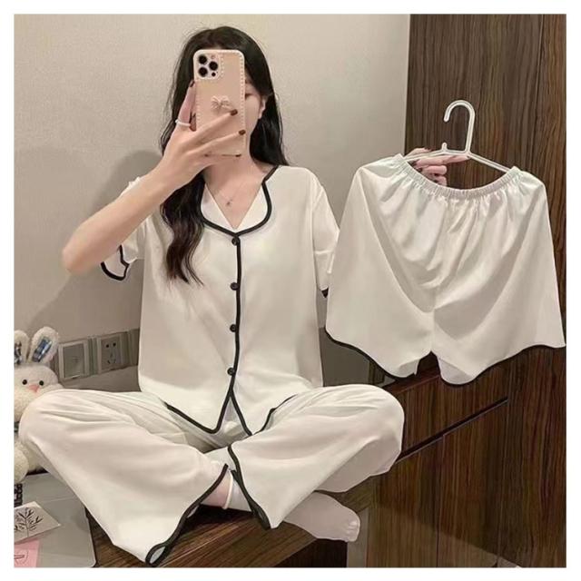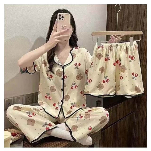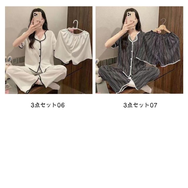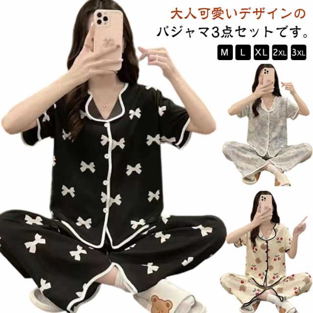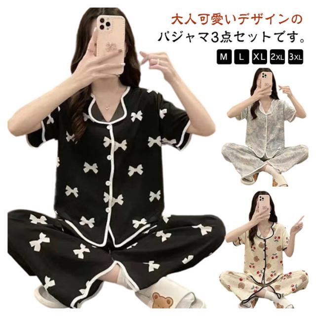パジャマ レディース 半袖 涼しい ルームウェア 3点セット 部屋着 ズボン 女の子 ナイトウェア 大きいサイズ かわいい 前開き パジャマ 夏 女性 上下セット 可愛い パジャマ ウエストゴム 婦人用 ロングパンツ 寝巻き 短パン M-3XL