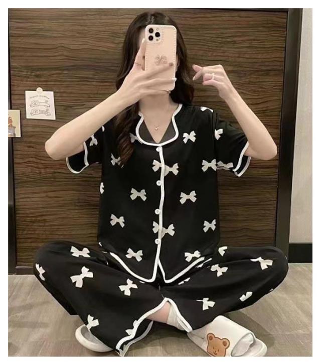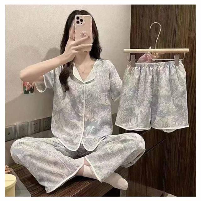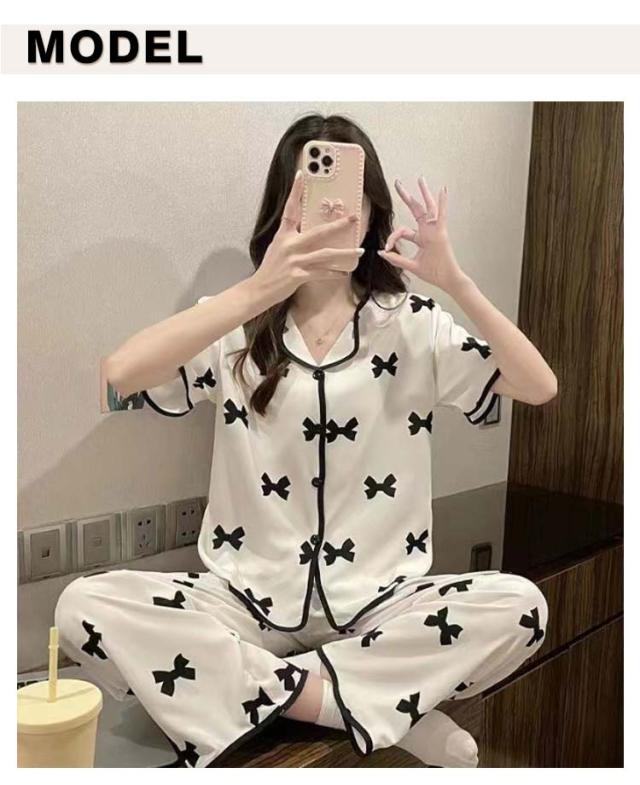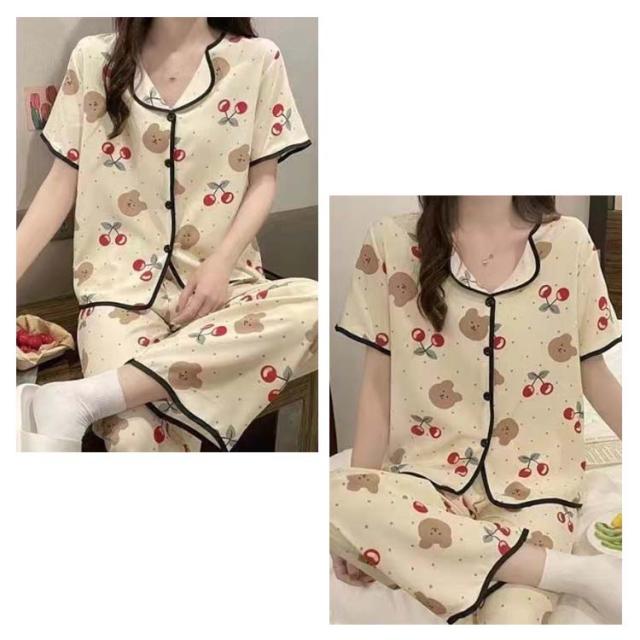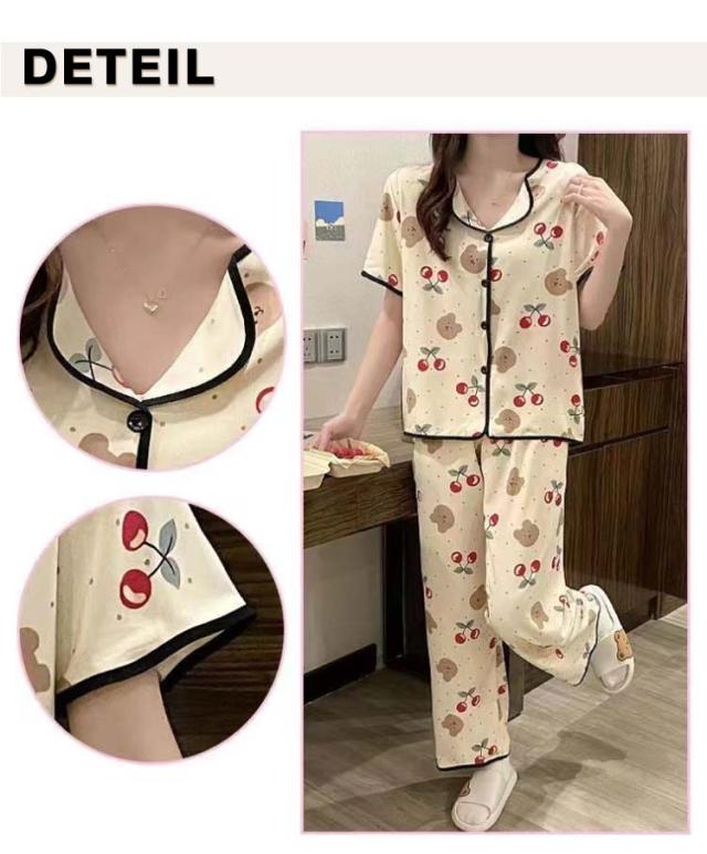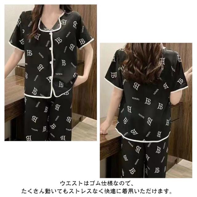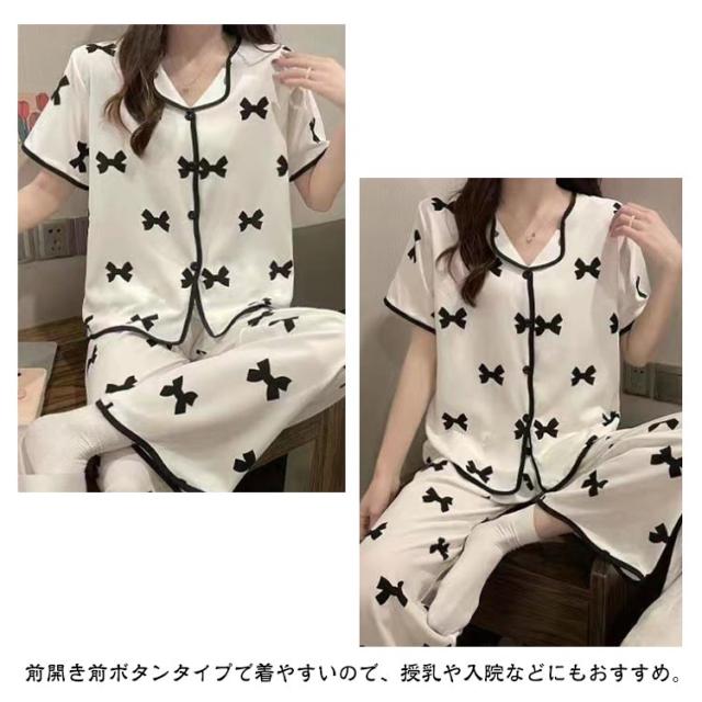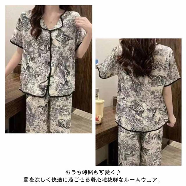 | M-3XL 大人可愛いデザインのパジャマ3点セットです。 前開き前ボタンタイプで着やすいので、授乳や入院などにもおすすめ。 ウエストはゴム仕様なので、たくさん動いてもストレスなく快適に着用いただけます。 おうち時間も可愛く♪夏を涼しく快適に過ごせる着心地抜群なルームウェア。 | |
