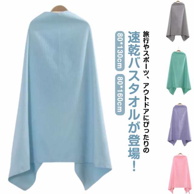 バスタオル スポーツ用 大判 肩掛けボタン付き 吸水 速乾 スポーツタオル スイミングタオル 運動タオル UVカット 暑さ対策 軽量 薄手 大きいサイズ 出張 旅行 温泉 海辺 水泳 ジム ヨガ 子供 男女兼用