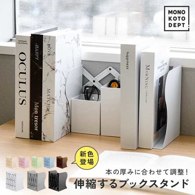 ブックスタンド 伸縮 書見台 本立て おしゃれ ブックエンド 倒れない スタンド 卓上 収納 リビング オフィス 本 新聞 ファイル ブラック ホワイト グレー