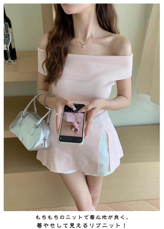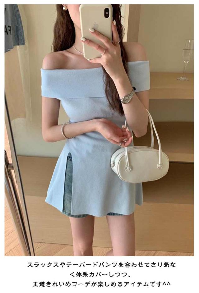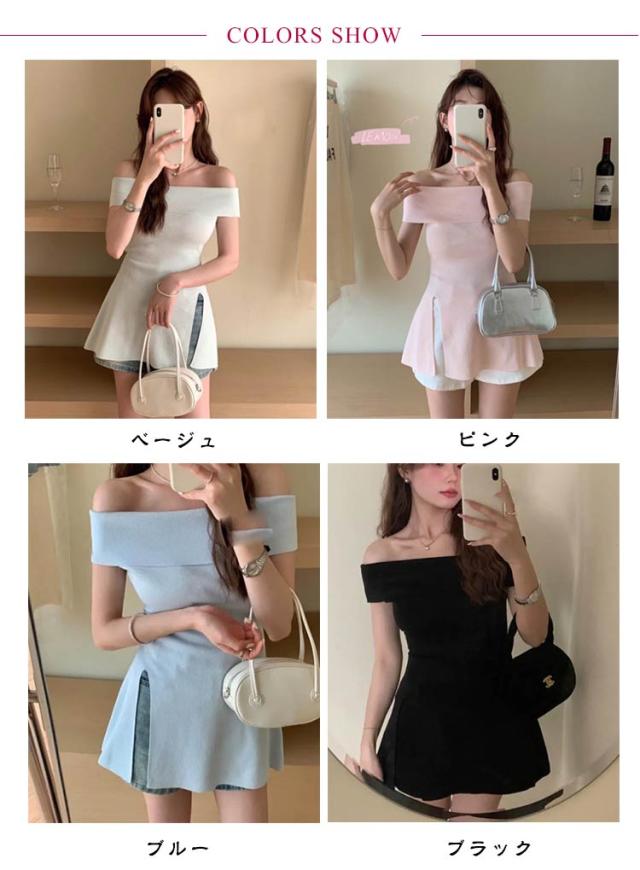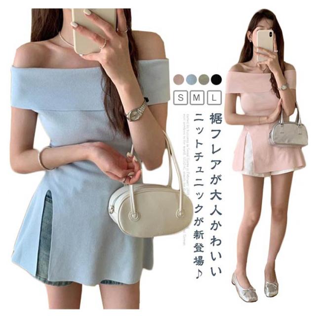 オフショルダー セーター リブニット レディース 半袖 トップス ペプラムトップス オフショルダー オフショルダー 肩出し フレア サマーニット プルオーバー トップス リブ おしゃれ きれいめ ブラック ベージュ ブルー