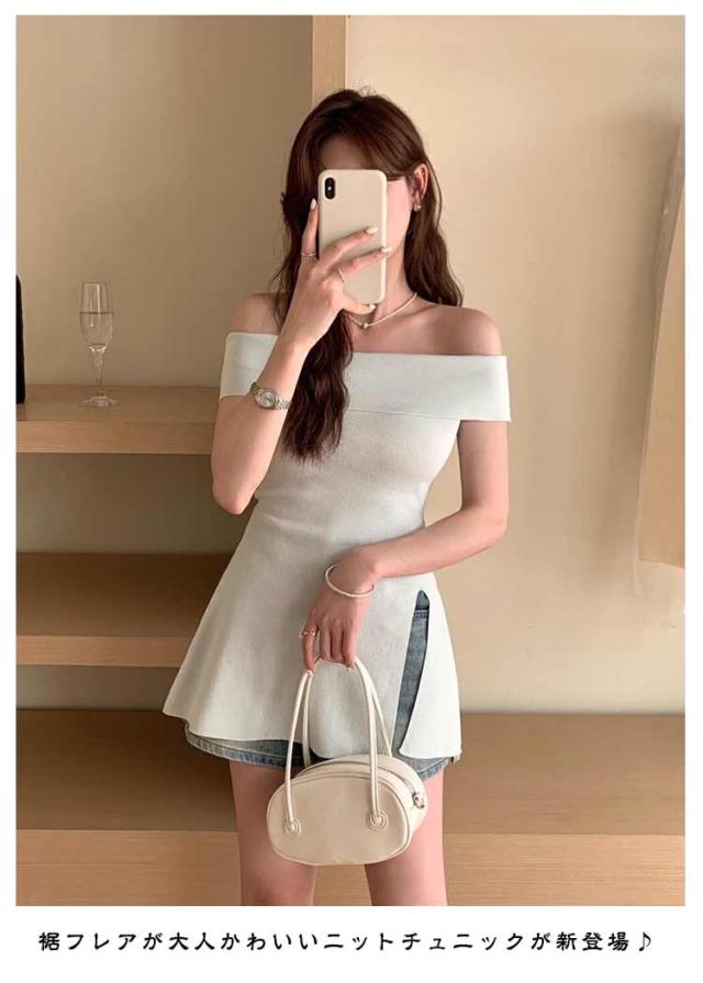 | 裾フレアが大人かわいいニットチュニックが新登場♪ オフショルダーとして着ると、デコルテを美しく見せてくれる、女性らしく華奢な印象になります。 高めの切り替え位置からふんわり広がるペプラムシルエットで、スタイルアップも叶えるフェミニンなデザイン。 もちもちのニットで着心地が良く、着やせして見えるリブニット! スラックスやテーパードパンツを合わせてさり気なく体系カバーしつつ、王道きれいめコーデが楽しめるアイテムです^^ | |