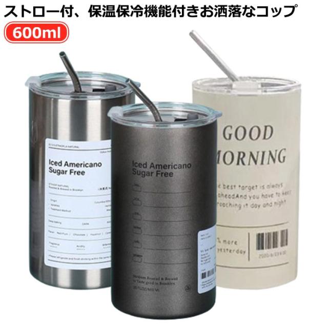 水筒 ストロー付き 水筒 蓋付き 600ml ストロー 付き 持ち運び タンブラー ストロー 付き コーヒー 保温 保冷 コップ 大容量 水筒 ストロータンブラー 真空断熱 タンブラー 直飲み おしゃれ 水筒 マグボトル コーヒーカップ ステンレス ビール オフィス