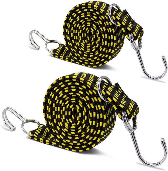 BUYIJIUGE荷台用 ゴム紐 自由伸縮 荷物固定紐 ゴムロープ 固定紐調節可能な長さ 金属製フックとバックル付 荷崩れ防止 バイク/オートバイ/トラック/キャリーカート/荷物固定(黄) (2点セ
