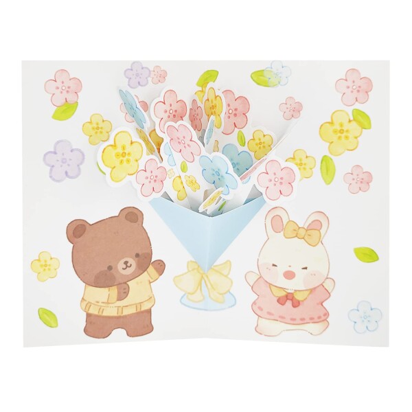 グリーティングカード バースデーカード ポップアップカード 3D誕生日カード 飛び出すメッセージカード 立体カード 子供の日 七五三 可愛い おしゃれ 封筒付き 大人 子供 (クマ&ウサギ
