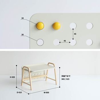 小さなお子様も自由に取付できる棚板が特徴的なキッズデスク。
