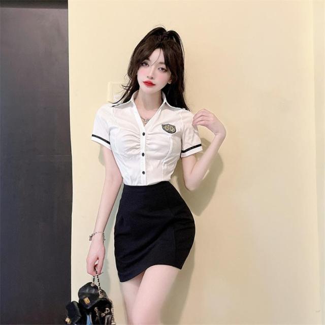 セットアップ レディース ツーピース 半袖 ワイシャツ ショート タイトスカート ダンス発表会 クラブ OL 公演 制服 ワーク 通勤 春夏 女の子衣装