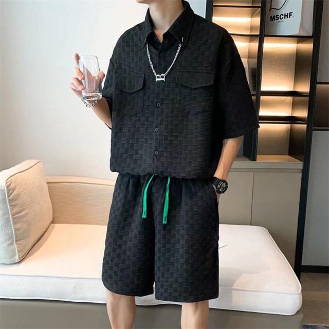 メンズ セットアップ 半袖 シャツ ショートパンツ Tシャツ ポケット 運動着 普段着 上下セット カジュアル ライブ 無地 オシャレ 夏 男子服