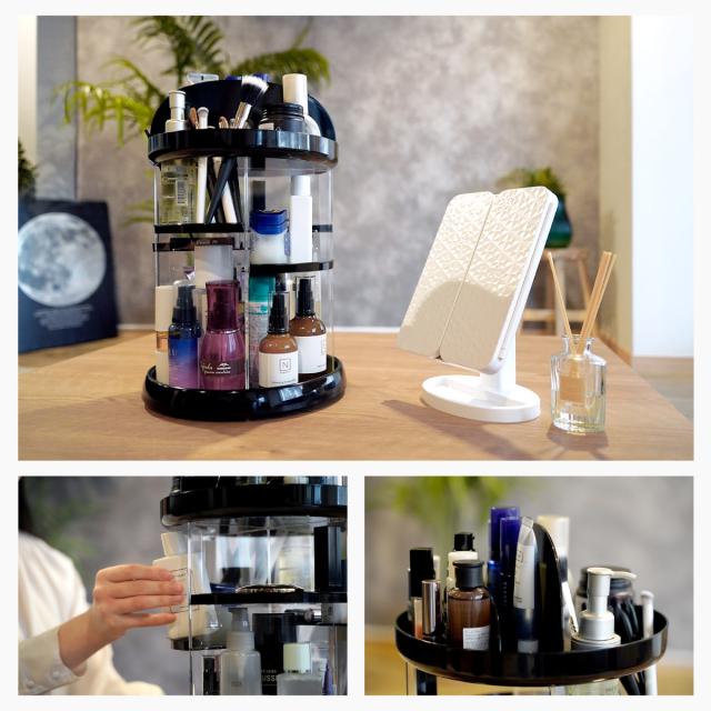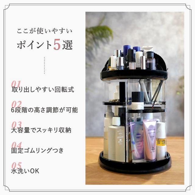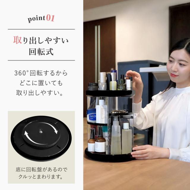 コスメボックス 大容量 メイクボックス 360° 回転式 コスメ 収納 ケース 化粧入れ 持ち運び 化粧品 女性 メイク 360度 回転 クリア ボックス 透明 化粧 おしゃれ 可愛い アクリル プレゼント ジュエリーボックス cosme-case02