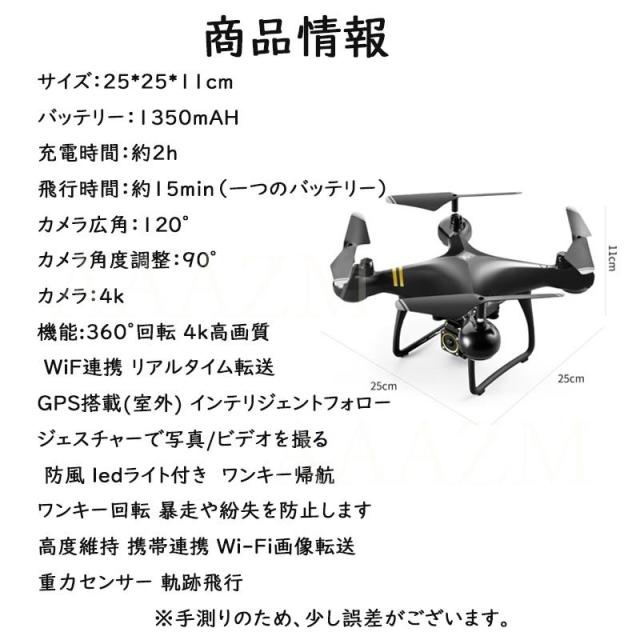 機能:360°回転 4k高画質 WiF連携 リアルタイム転送 GPS搭載(室外) インテリジェントフォロー ジェスチャーで写真/ビデオを撮る 防風 ledライト付き ワンキー帰航 ワンキー回転 暴走や紛失を防止します 高度維持 携帯連携 Wi-Fi画像転送 重力センサー 軌跡飛行