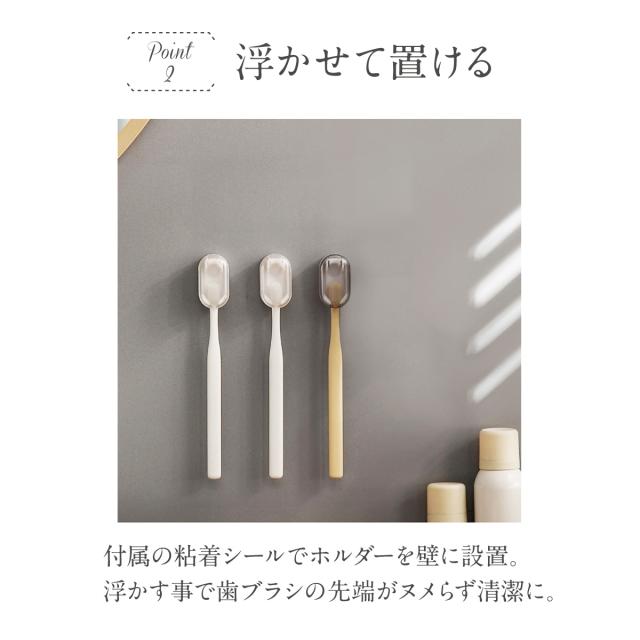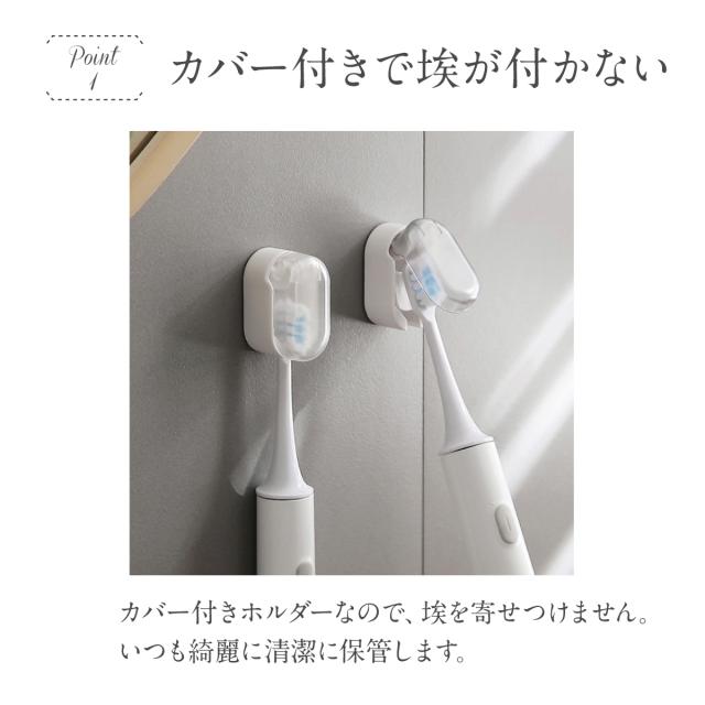 歯ブラシホルダー 2個セット 歯ブラシ カバー付き 収納 洗面所 洗面台 壁面 ホワイト 便利グッズ t-case